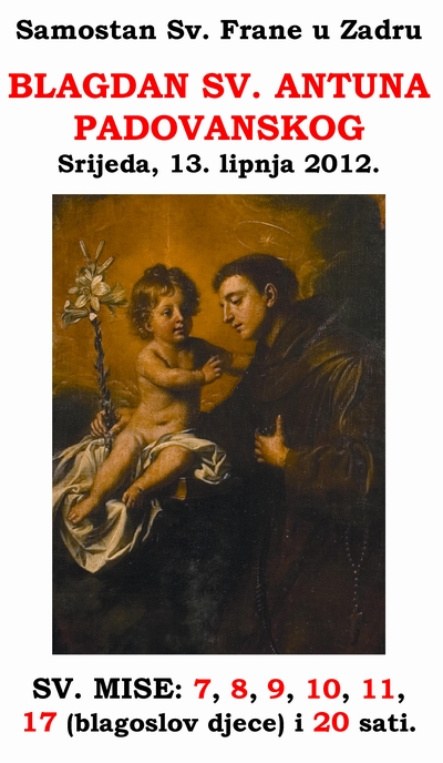 : PLAKAT SV. ANTE 2012. : : Srijeda 13. VI. SV. ANTE. Mise u 7, 8, 9, 10 , 11, 17 (blagoslov djece) i 20 h : SVETI ANTE - MISE 8 u 10,17 i 20 prezentacija u PPT-u s pjesmama : SVETI ANTE 13. VI. : SVETI ANTE PADOVANSKI : SVETI ANTE - MISA U 10 : Molitve sv. Antunu :