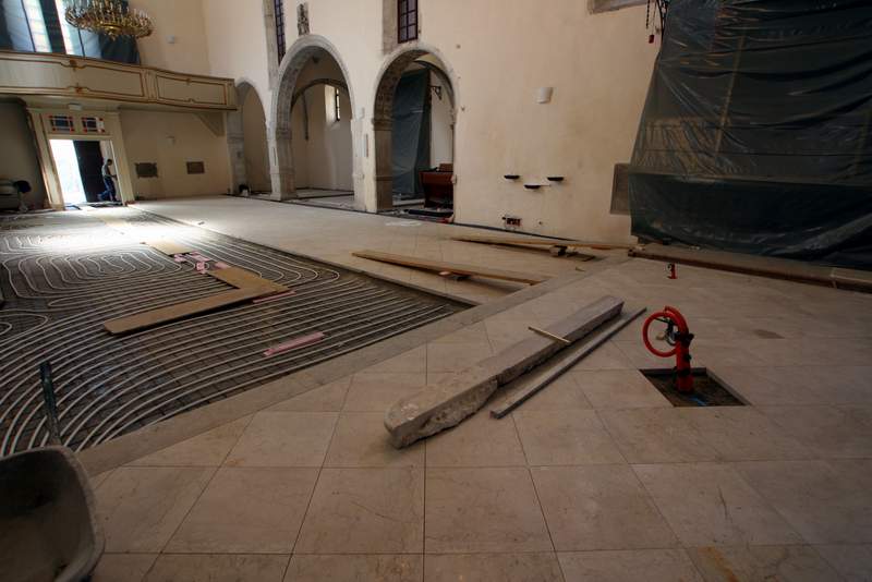 Bliži se Uskrs, što znači da je katolička crkva u punoj pripravi za ovaj blagdan koji se naziva najvećim. A priprema u Crkvi svetog Frane ima građevinska obilježja. Upravo se izvode posljednji radovi postavljanja novih ploča, u sklopu kojih je izvedena i instalacija podnog grijanja.