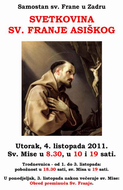 ZADAR SVETI FRANE FRA BERNARDIN 12. XII.2011 foto album : Zadar FRANJO ASISKI SKLADATELJ BOZJE LJEPOTE prestavljanje knjige od fra Bernardina Skunca VN550476 audio zapis predstavljanja knjige : Razgovor s prof. Stijepom Obad VN550477 audio zapis