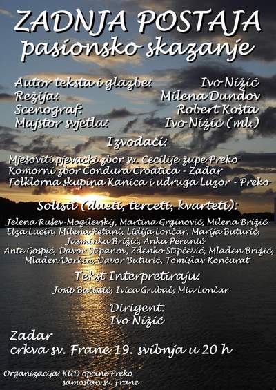 PLAKAT ZADNJA POSTAJA - pasionsko skazanje Ive Nižića i crkvi sv. Frane 19. V. 2010.