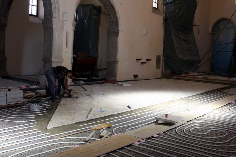 Bliži se Uskrs, što znači da je katolička crkva u punoj pripravi za ovaj blagdan koji se naziva najvećim. A priprema u Crkvi svetog Frane ima građevinska obilježja. Upravo se izvode posljednji radovi postavljanja novih ploča, u sklopu kojih je izvedena i instalacija podnog grijanja.