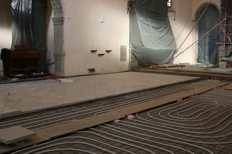 U Svetištu i lađi crkve postavljene su cijevi za podno grijanje. Više fotografija o akciji za misiju fra Ilije Barišić i radovima u crkvi sv. Frane u Zadru: ZADAR 8.IV. 2011