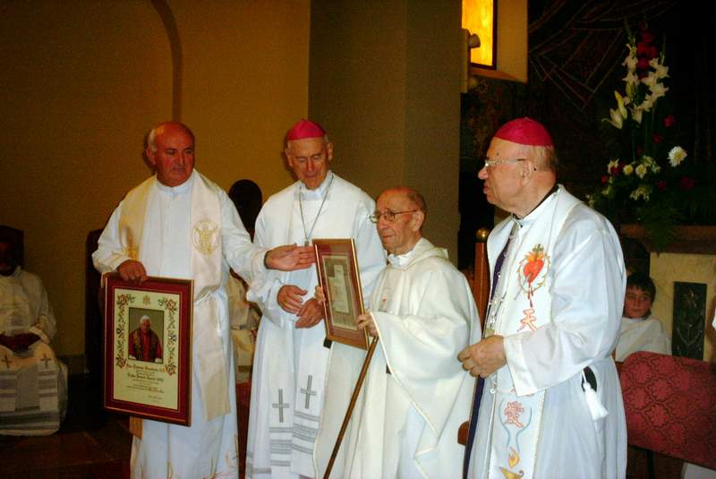 Benedikt XVI i general Franjevačkog reda OFM podijelili su svoj blagoslov. Na slici su fra Franjo Delić Gvardijan, nadbiskup u miru Ante Jurić i umirovljeni biskup porečko pulski Bogetić.