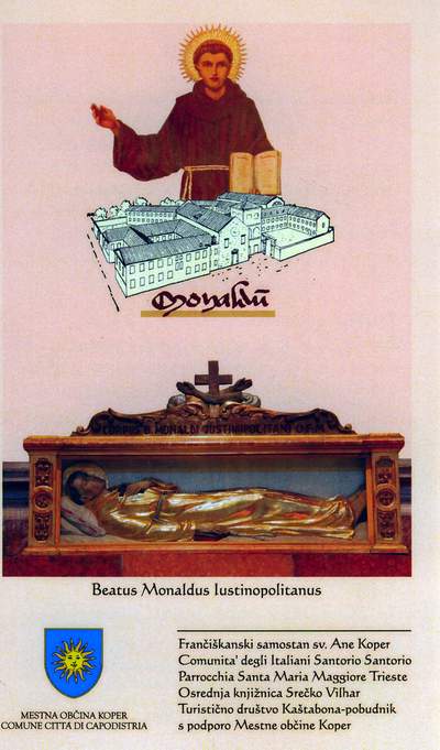 Blaženi Monald rodio se najvjerojatnije u Kopru 1210. godine u zemljoradničkoj obitelji. Tu je, u samostanu sv. Frane koji se nalazio na mjestu današnje gimnazije, stupio u Franjevački red. Kao razboritom i mudrom redovniku, Monaldu su bila povjeravana posebna zaduženja.