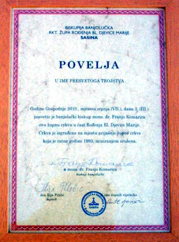 : 5. studenoga 2012. otvorena je nova stranica ŽUPE SASINA. Ideja vrlo vrijedna. Drago mi je da imamo jednu NAŠU STRANICU gdje možemo pisati i izmjenjivati razne ideje i brigu za našu SASINU. Hvala administratoru i sponzorima stranice. Želim Vam lijepu suradnju uz puno pozdrava fra Drago